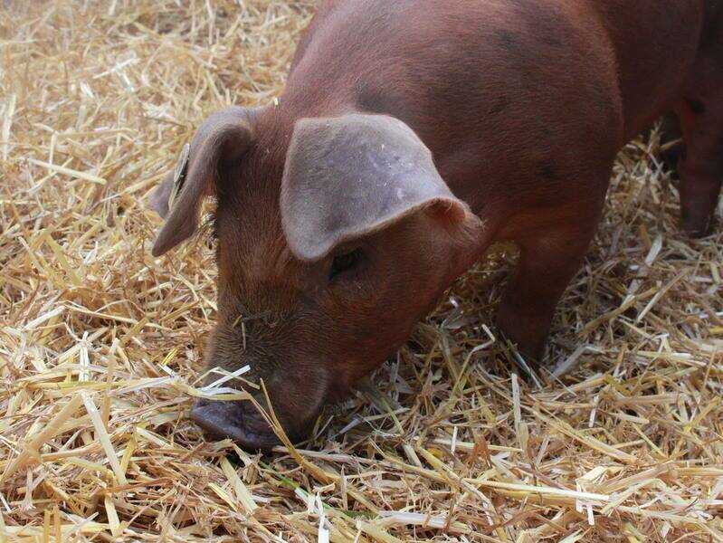 Durch die langjährige Erfahrung in der Außenstallhaltung haben wir uns für eine robuste Duroc Kreuzung entschieden.